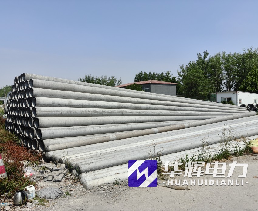 8米信丰水泥电线杆通常采用钢筋混凝土离心成型工艺,杆体呈锥形结构,梢径150mm-190mm,根径230mm-270mm,壁厚40mm-50mm。根据标准GB/T4623-2014,产品混凝土强度等级不低于C40,主筋采用HRB400级钢筋,配筋量根据抗裂弯矩要求设计,标准抗裂弯矩可达12-18kN·m,破坏弯矩不小于24kN·m。杆体重量约0.5-0.8吨,运输安装便捷,适合人工或小型机械施工。